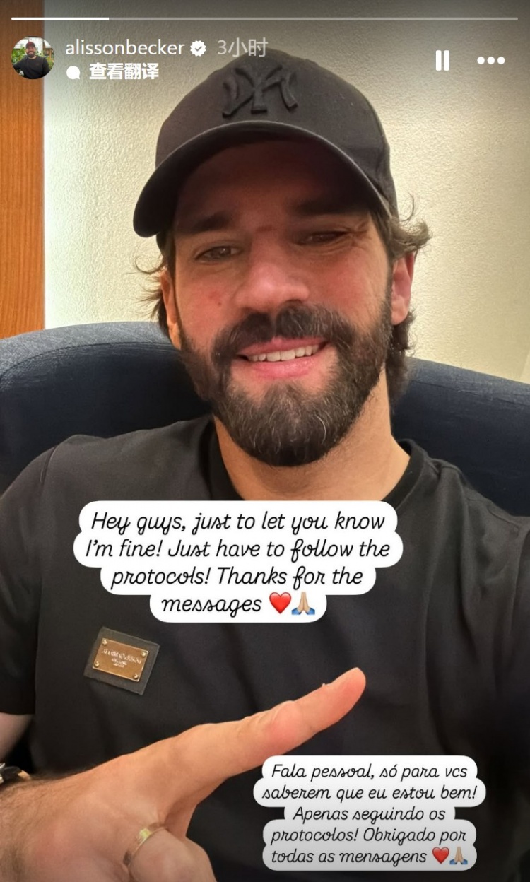 巴西國家隊(duì)表示,阿利森雖在頭部碰撞后情況良好且無任何臨床不適報(bào)告,仍需遵守國際足聯(lián)腦震蕩協(xié)議,他將返回利物浦繼續(xù)康復(fù)進(jìn)程。