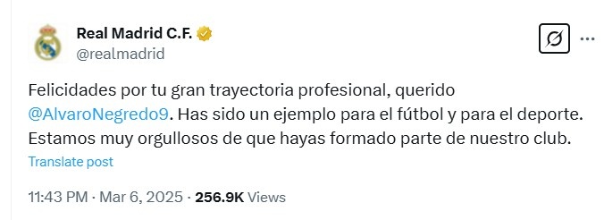 皇馬官方:祝賀內(nèi)格雷多有著偉大的生涯,為你曾是我們一員而自豪