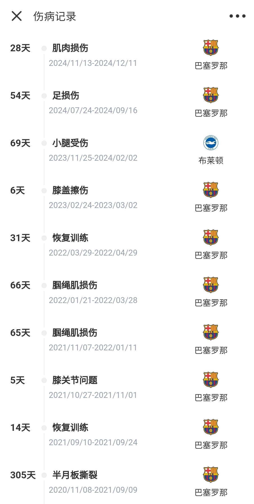 2020-2021賽季,法蒂開賽10場比賽貢獻(xiàn)5球2助,隨后遭遇半月板撕裂重傷,缺陣長達(dá)1年時(shí)間。2021年10月,巴薩宣布與傷愈歸來的法蒂續(xù)約6年至2027年,據(jù)悉年薪1400萬歐。