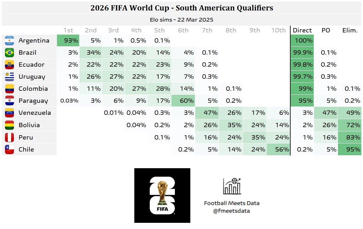 最新世預(yù)賽南美區(qū)晉級(jí)概率