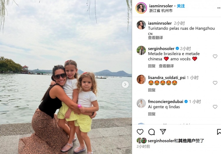 妻子帶女兒逛杭州!塞爾吉尼奧評(píng)論:一半巴西人,一半中國人