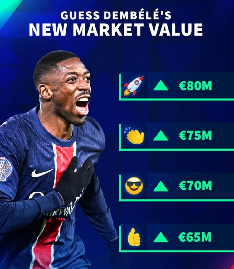 3月24日訊 登貝萊在進(jìn)入2025年后狀態(tài)爆表,是同期五大聯(lián)賽進(jìn)球最多的球員,《轉(zhuǎn)會市場》也確認(rèn)他的身價將會顯著提升。
