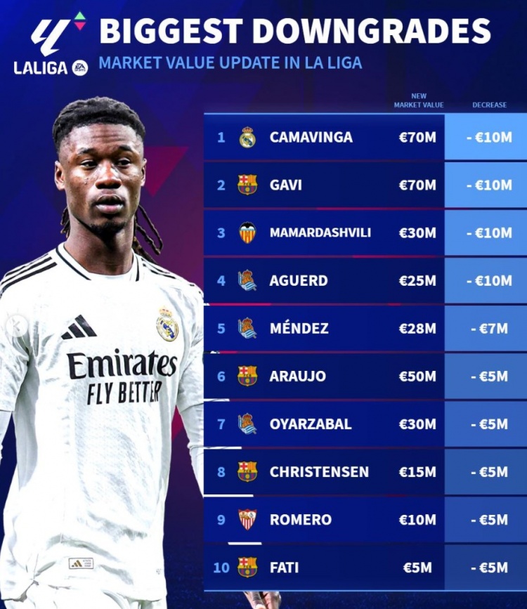 西甲身價(jià)貶值榜:加維、法蒂領(lǐng)銜巴薩4將,卡馬文加&瑪瑪達(dá)在列