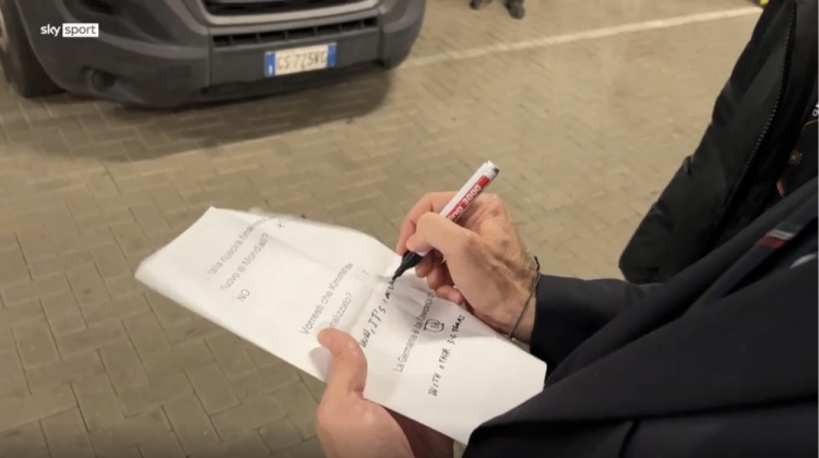 在首回合于米蘭進(jìn)行的比賽期間,布馮時(shí)間很少,他非常禮貌地為無法接受采訪道歉,因此在次回合于多特蒙德進(jìn)行的比賽結(jié)束后,記者Fabian Schreiner用一張印有以意大利語提出的三個(gè)問題的A4紙來請(qǐng)布馮回答。這三個(gè)問題都是一般疑問句,分別是: