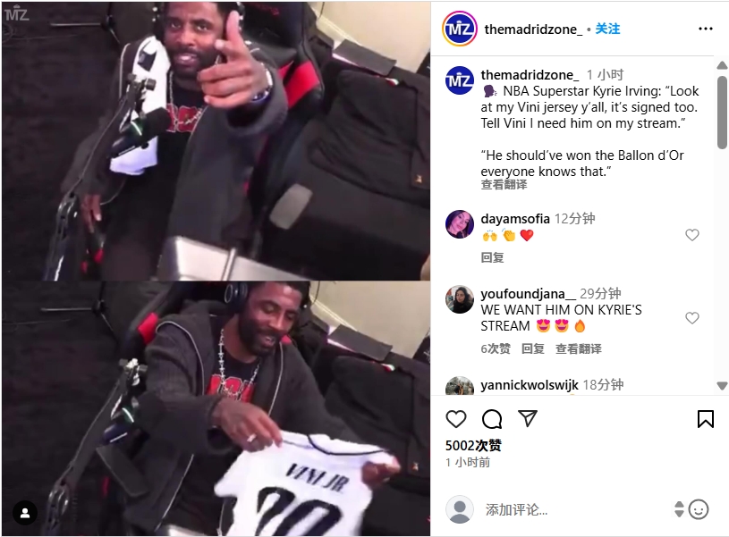 NBA球星歐文:維尼修斯本該獲得金球獎(jiǎng),每個(gè)人都清楚