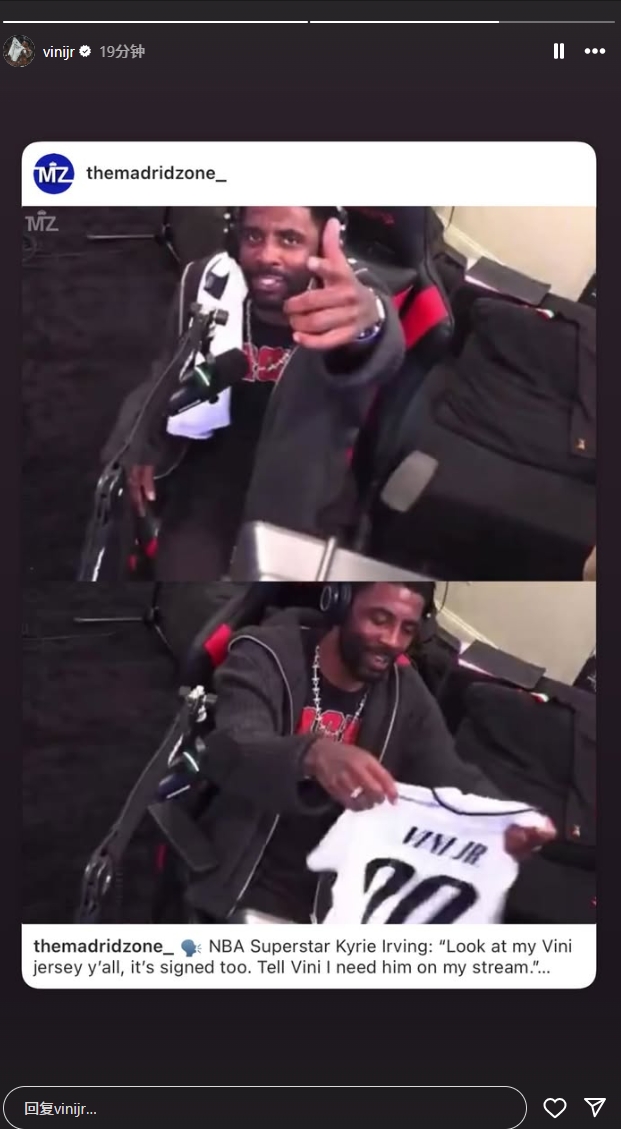 03月24日訊 NBA球星凱里歐文近日開(kāi)啟直播,期間他為維尼修斯發(fā)聲。