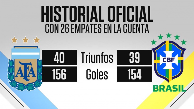 據ESPN統計,阿根廷與巴西交手105次,阿根廷戰(zhàn)績40勝26平39負,打進156球,丟掉154球。