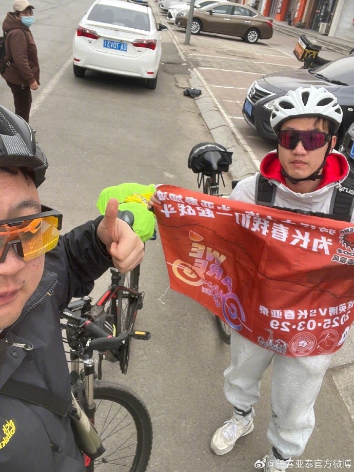 7天747公里,兩名亞泰球迷從長春騎行到大連為亞泰周六比賽助威