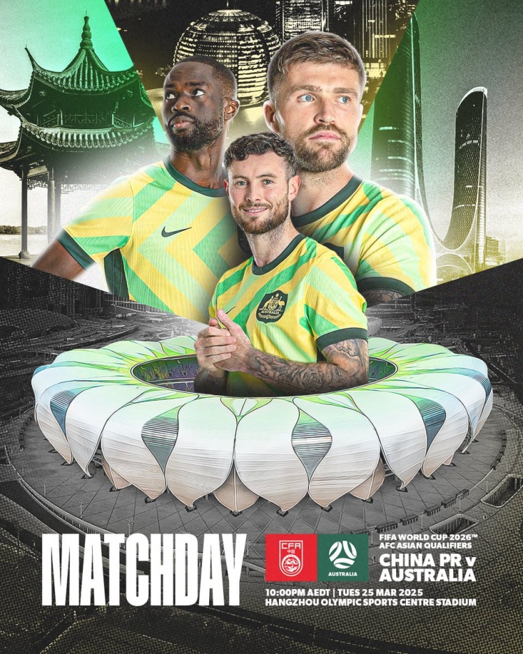 澳大利亞國家隊官推發(fā)布了本場比賽的海報,三名后衛(wèi)杰里亞、艾登-奧尼爾和伯吉斯入鏡,本場比賽的體育場“大蓮花”位于海報下方。