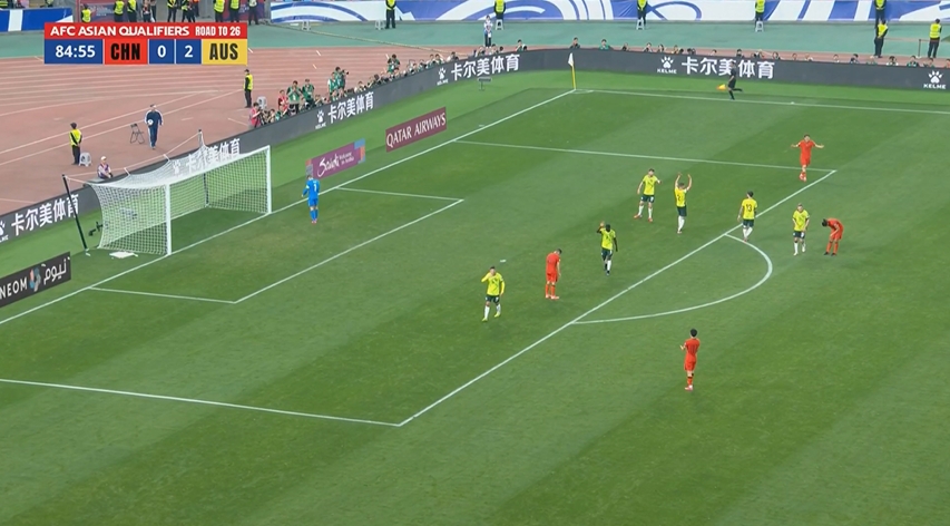 3月25日訊 國(guó)足vs澳大利亞第85分鐘,張玉寧強(qiáng)行選擇遠(yuǎn)射打高,拜合拉木攤手,張玉寧也因?yàn)檫@次射門抽筋被換下。