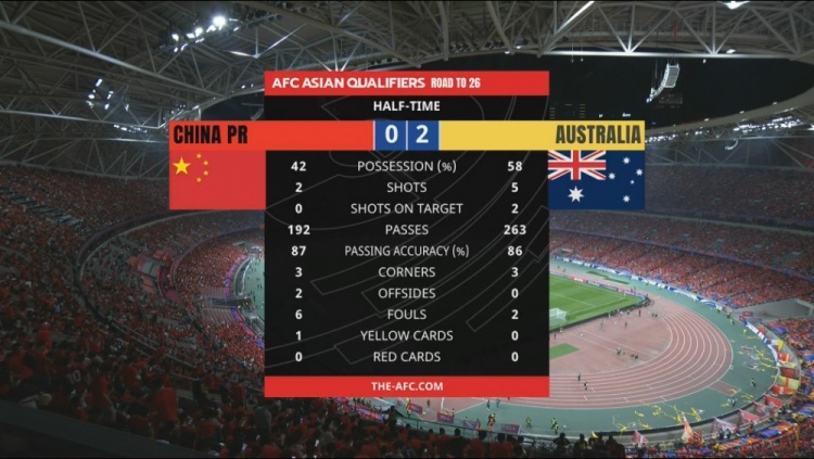 火熱的杭州球市并未給國足帶來好運(yùn),在事關(guān)18強(qiáng)賽走勢的最關(guān)鍵一戰(zhàn)中,國足上半場便0:2落后澳大利亞隊(duì)。在兩隊(duì)實(shí)力差距明顯的背景下,國足想在下半場后來居上,似乎沒有太多可能。