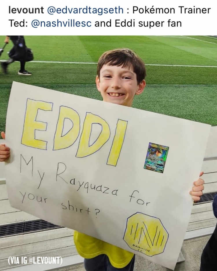 3月26日訊 美職聯(lián)球隊納什維爾SC的官方Instagram最近發(fā)文,表示一位小球迷用寶可夢卡牌換到了球員的球衣。