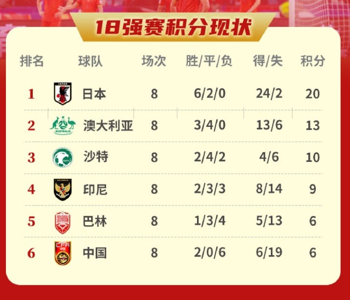 3月26日訊 18強(qiáng)賽第8輪,國足主場0-2不敵澳大利亞,暫時排名小組墊底?!蹲闱驁蟆纷姆治隽藝愠鼍€形勢,如果下輪輸給印尼將提前出局。