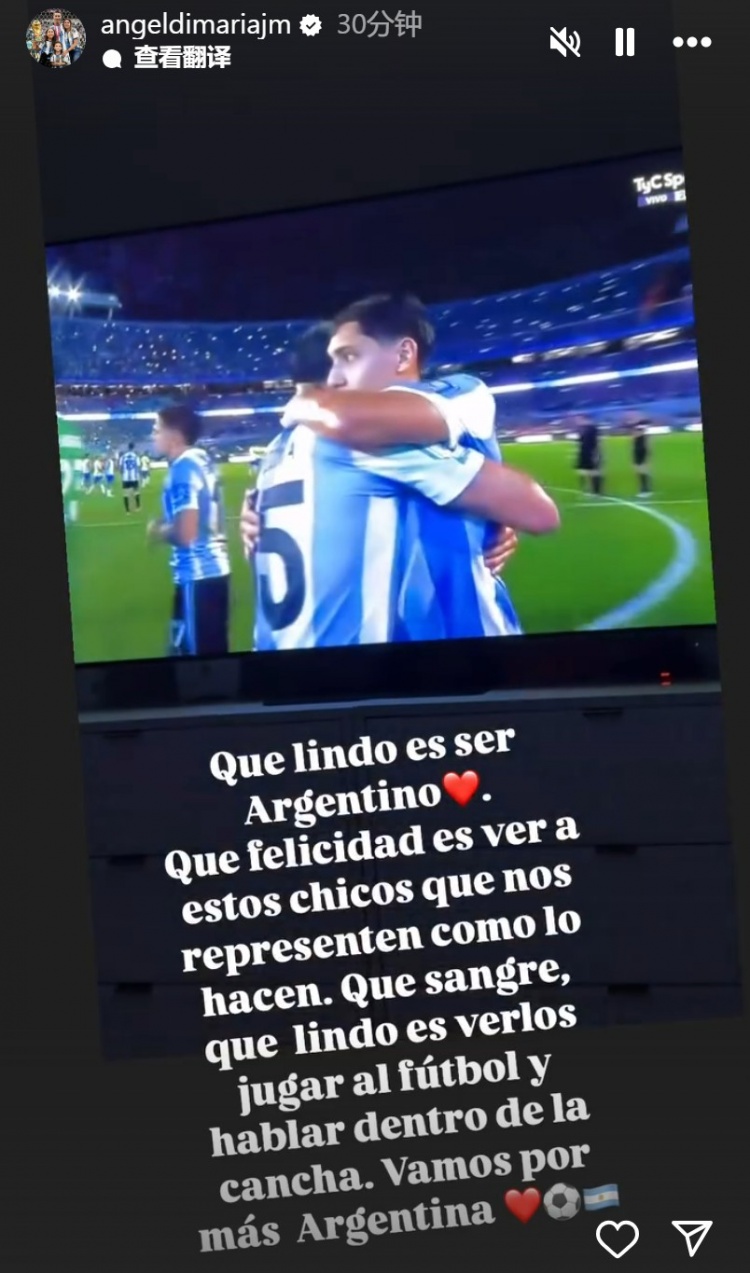 迪馬利亞稱贊阿根廷:看這些孩子們踢球是多么美好,繼續(xù)加油?