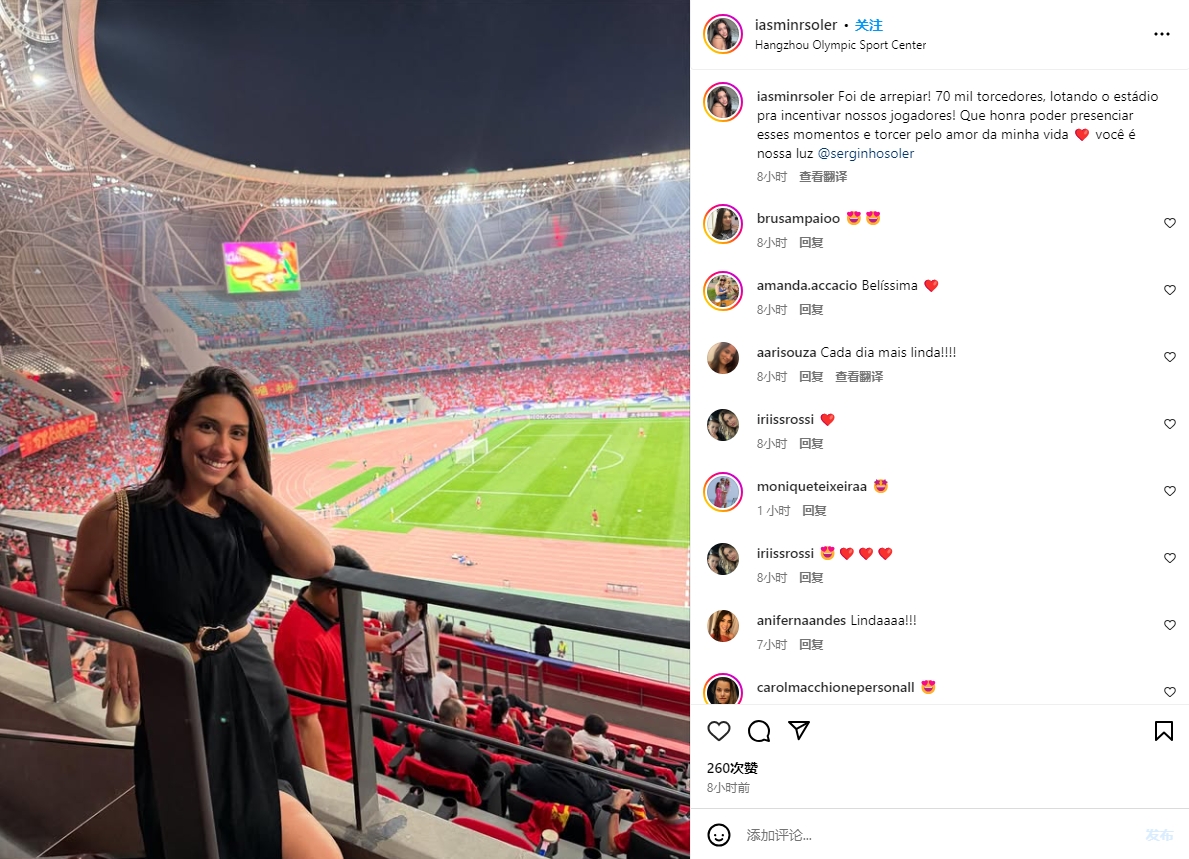 3月26日訊 國(guó)足主場(chǎng)與澳大利亞的比賽結(jié)束后,塞爾吉尼奧的妻子更新社媒,曬出了自己在現(xiàn)場(chǎng)觀賽的感受。