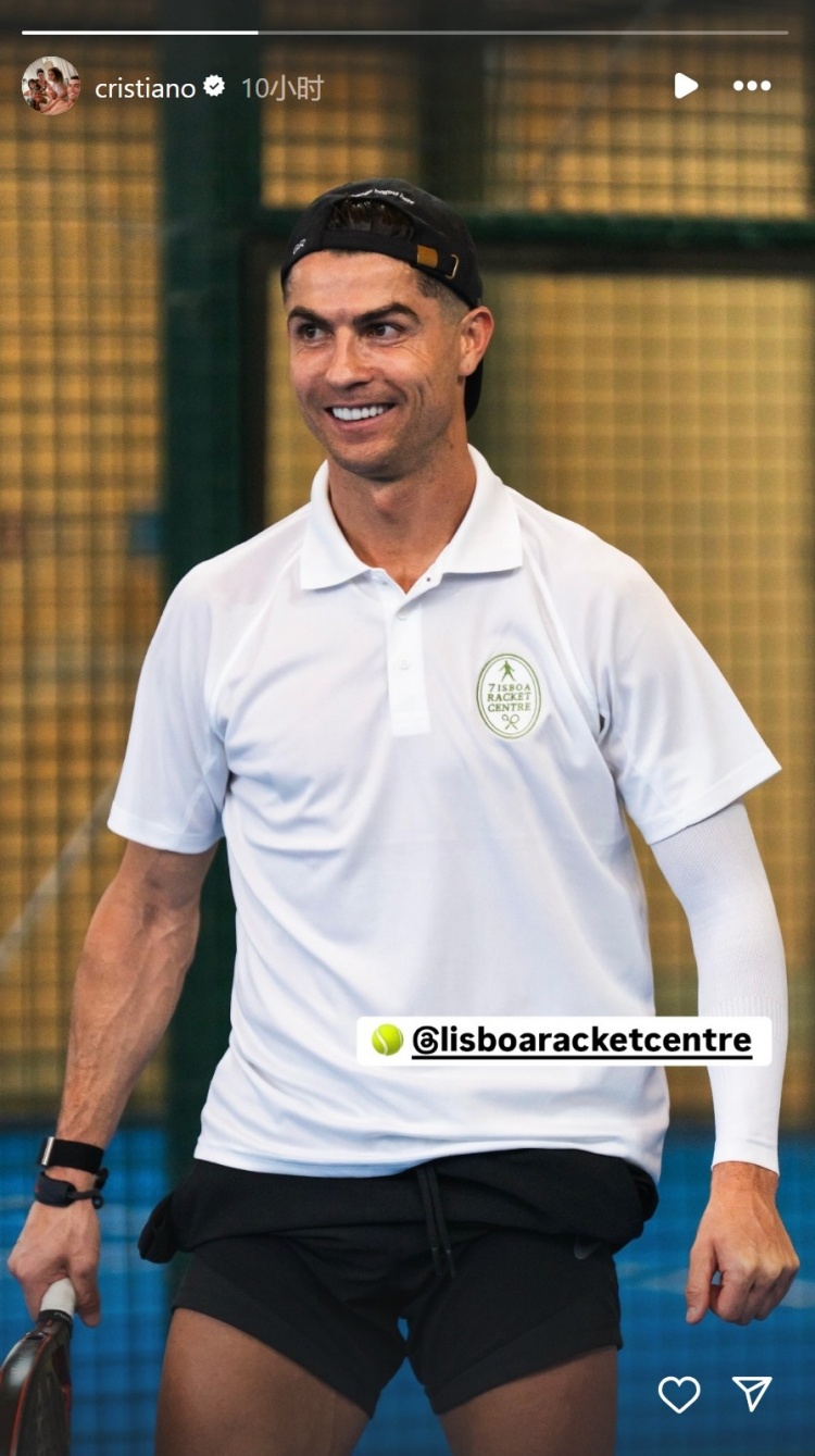 歐國聯(lián)1/4決賽次回合比賽,C羅打進一球,葡萄牙加時5-2擊敗丹麥,兩回合總比分5-3晉級四強,結(jié)束國家隊比賽任務(wù)的C羅迎來了難得的休閑時光,他在社交媒體上曬出自己打板式網(wǎng)球的照片。