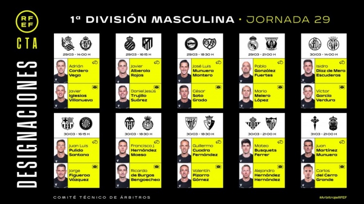 西甲第29輪裁判安排:富埃爾特斯執(zhí)法皇馬,胡安-桑塔納執(zhí)法巴薩