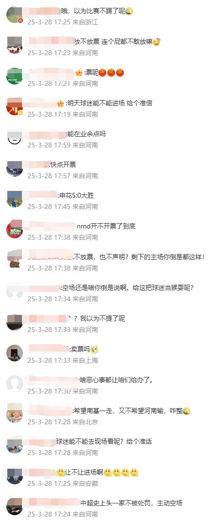 3月28日訊 本周六晚間,河南隊(duì)將在主場(chǎng)迎戰(zhàn)上海申花,不過(guò)這場(chǎng)比賽的門(mén)票遲遲沒(méi)有銷(xiāo)售,球隊(duì)也沒(méi)有對(duì)此做出解釋。賽前一天,河南隊(duì)球迷越發(fā)不滿。在球隊(duì)官博評(píng)論區(qū),球迷們發(fā)出了很多的質(zhì)問(wèn)。