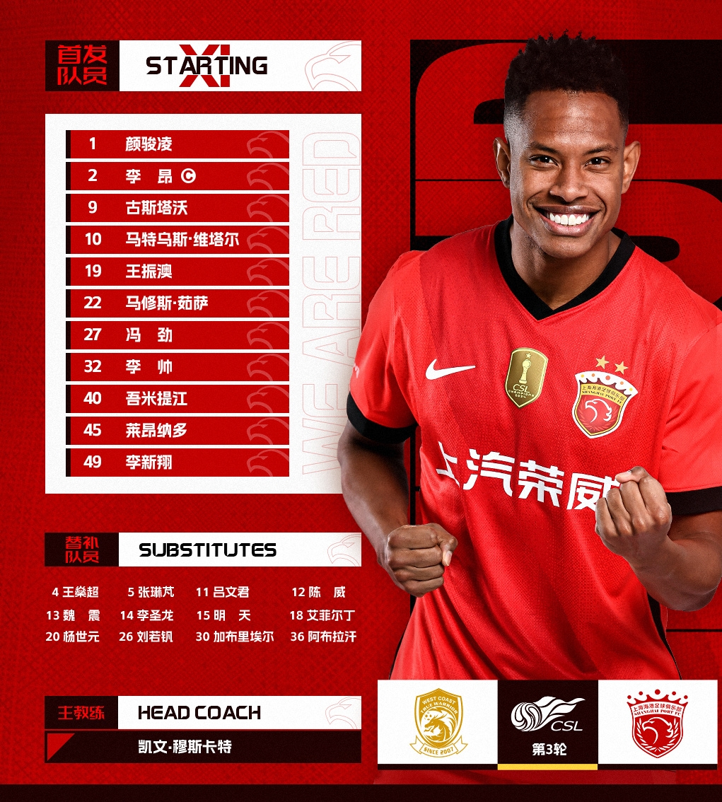 中超聯(lián)賽第3輪,青島西海岸vs上海海港,今日首發(fā)名單