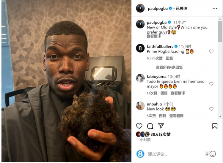博格巴社媒曬理發(fā)照片:新發(fā)型還是舊發(fā)型,大家喜歡哪一個?