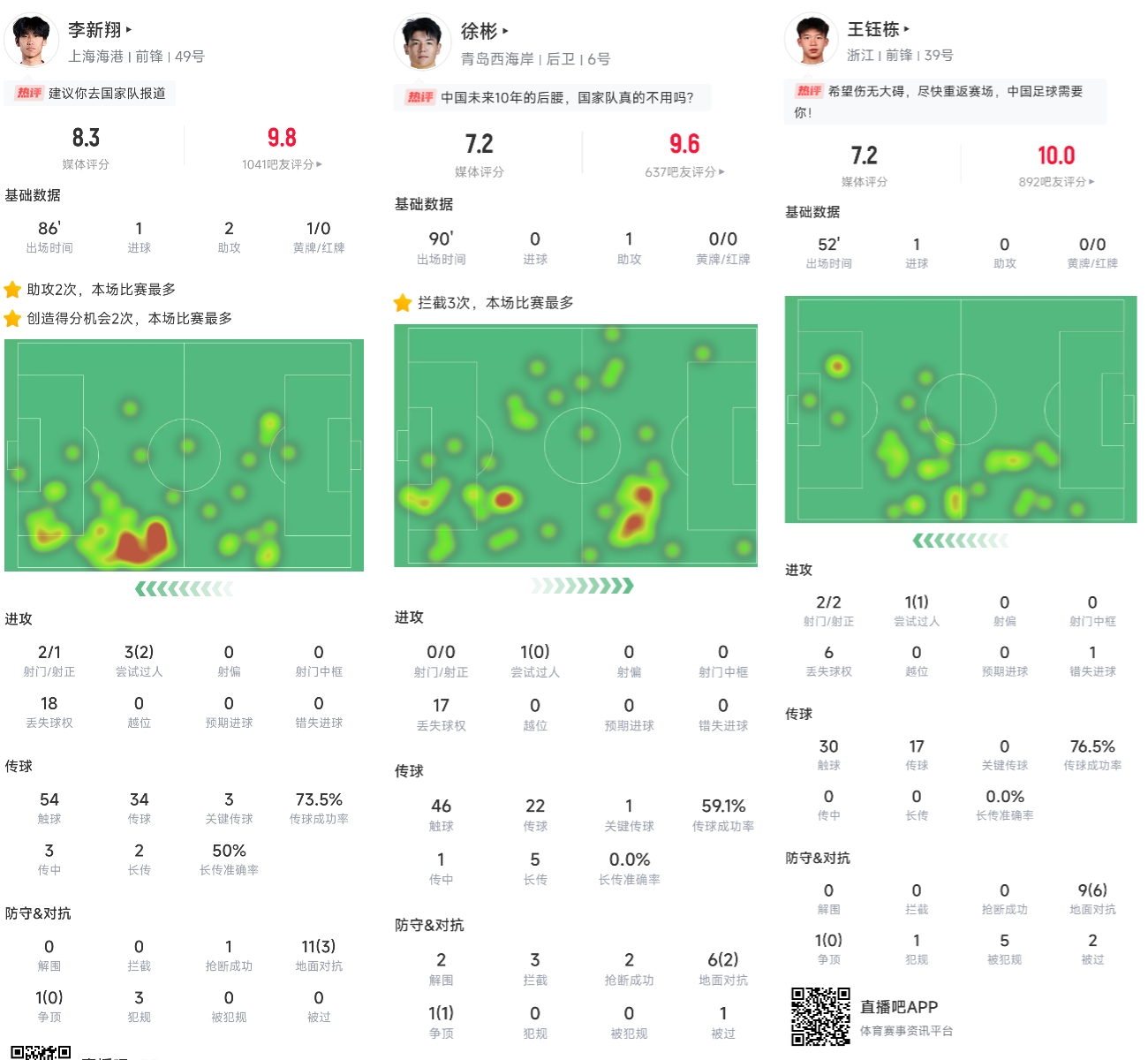 上海海港客場3-3戰(zhàn)平青島西海岸的比賽,19歲的海港小將李新翔首發(fā)迎來中超首秀,全場比賽1射2傳發(fā)揮亮眼,幫助海港搶下一分。青島西海岸方面,20歲的后腰徐彬也表現(xiàn)出色,為阿齊茲送出一次助攻。