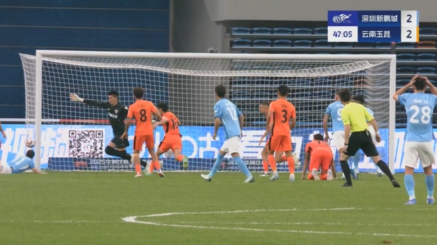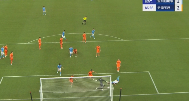 03月28日訊 中超第3輪,深圳新鵬城vs云南玉昆,比賽第47分鐘,埃杜-加西亞后點無人盯防頭球破門,深圳新鵬城連扳兩球2-2扳平云南玉昆。