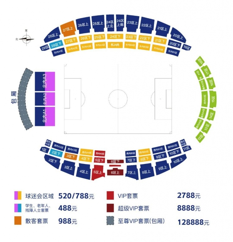 2、套票票價(jià)及看臺(tái)分布: