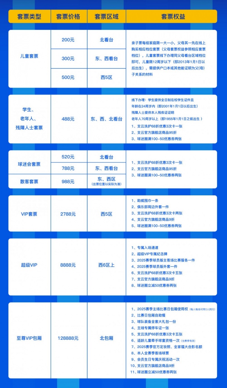 ?二、2025賽季主場套票銷售細(xì)則:
