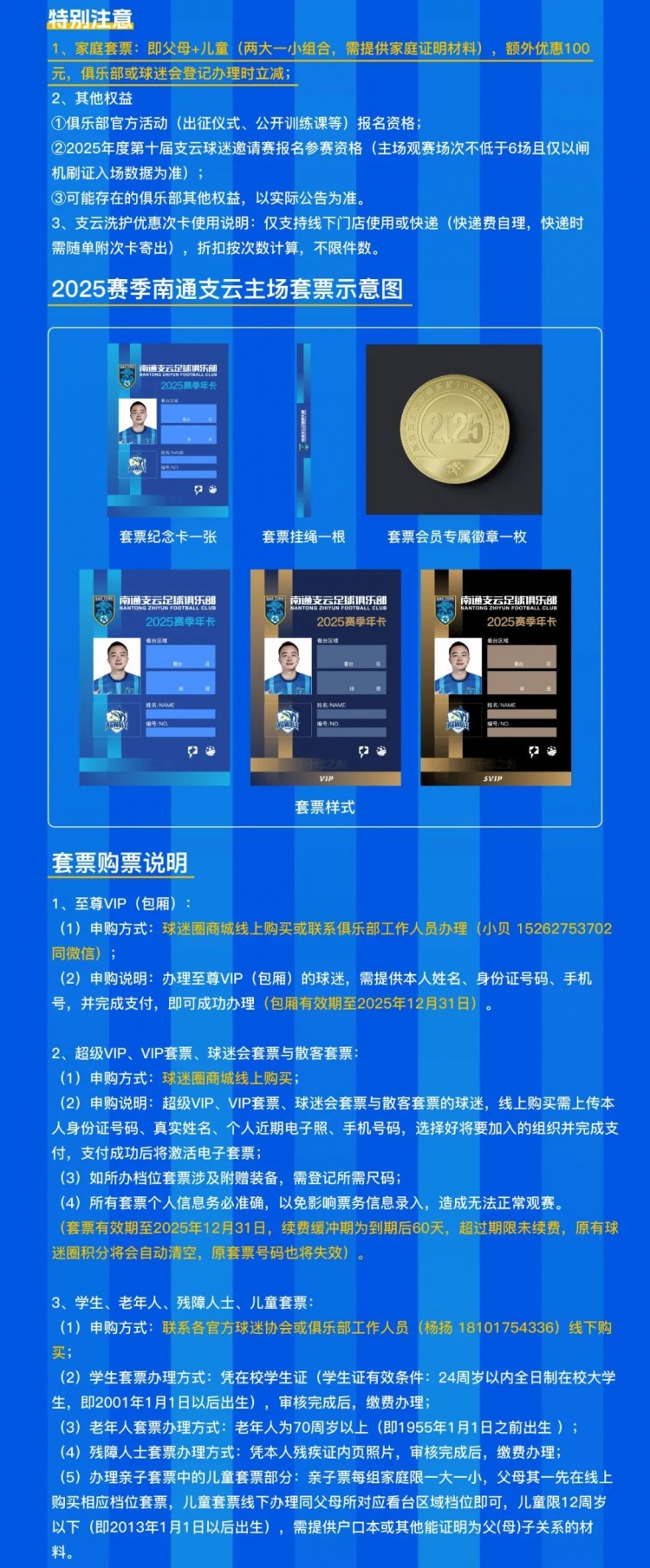 ?即日起,2025賽季南通支云足球俱樂部主場套票正式發(fā)售,具體方案如下: