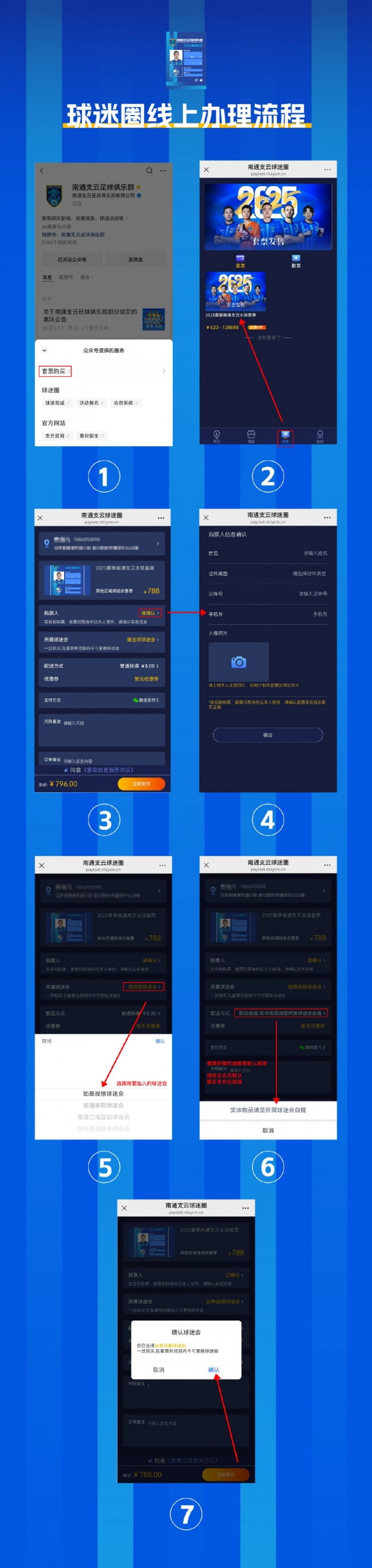 2、實(shí)名制要求:2025賽季南通支云足球俱樂部主場套票采用強(qiáng)制實(shí)名制銷售,購票人提供的個(gè)人信息要求務(wù)必真實(shí)準(zhǔn)確,請?jiān)谫徺I時(shí)再次確認(rèn)實(shí)名制信息的正確性(名字+身份證號碼必須和身份證上的保持一致), 以免影響入場觀賽;