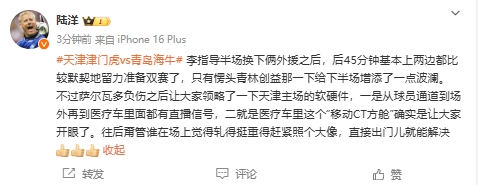03月29日訊 中超第三輪,天津津門虎1-0青島海牛。媒體人陸洋在微博發(fā)文,稱贊天津主場的軟硬件設(shè)施。