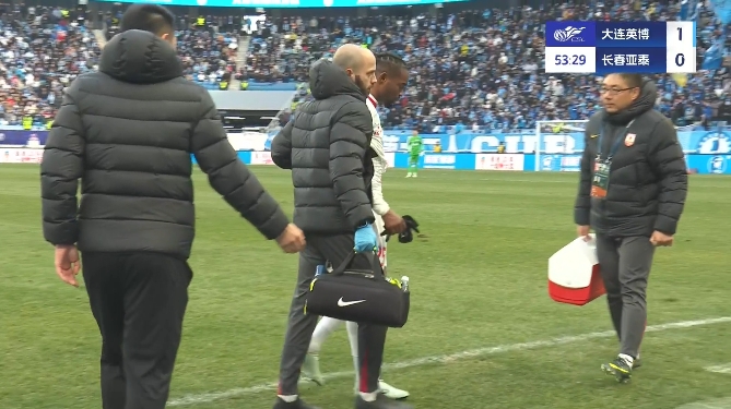 03月29日訊 大連英博vs長(zhǎng)春亞泰第54分鐘,西普里安傷退,亞泰本場(chǎng)已經(jīng)3人因傷被換下!