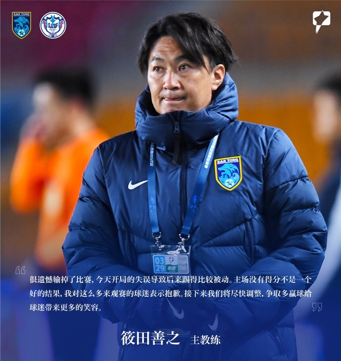 筱田善之談到本場(chǎng)比賽時(shí)說道:“很遺憾輸?shù)袅吮荣悾裉扉_局的失誤導(dǎo)致后來踢得比較被動(dòng)?!?/p>