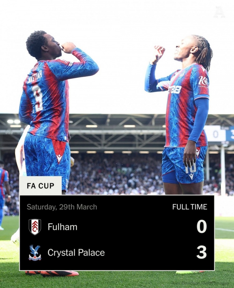 3月29日訊 在足總杯1/4決賽,水晶宮客場3-0完勝富勒姆晉級半決賽。