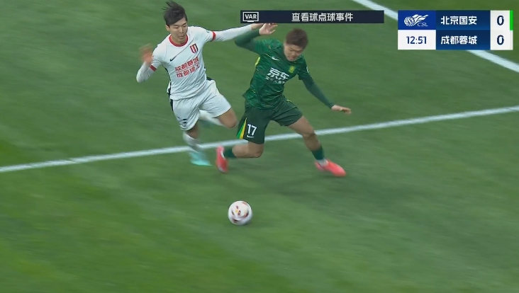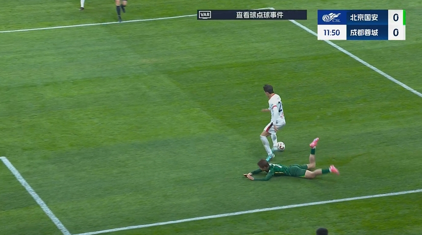 比賽第11分鐘,楊立瑜突破至禁區(qū)內(nèi)與元敏誠接觸后倒地,馬寧果斷判罰點球!隨后VAR介入,馬寧去場邊查看后維持點球判罰。第18分鐘法比奧點射破門,國安1-0領(lǐng)先蓉城。