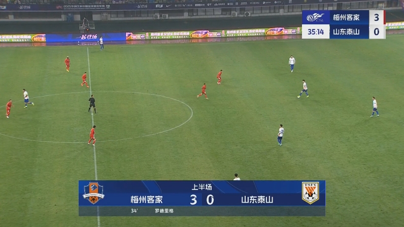 被打花了!泰山34分鐘0-3落后梅州,梅州3腳射門打進3球!