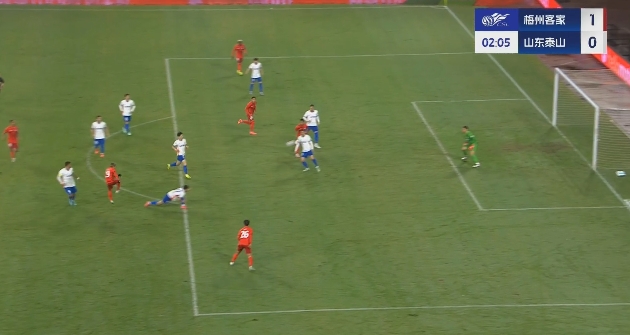 梅州開場2分鐘1-0泰山!茹子楠不停球抽射世界波攻破王大雷大門