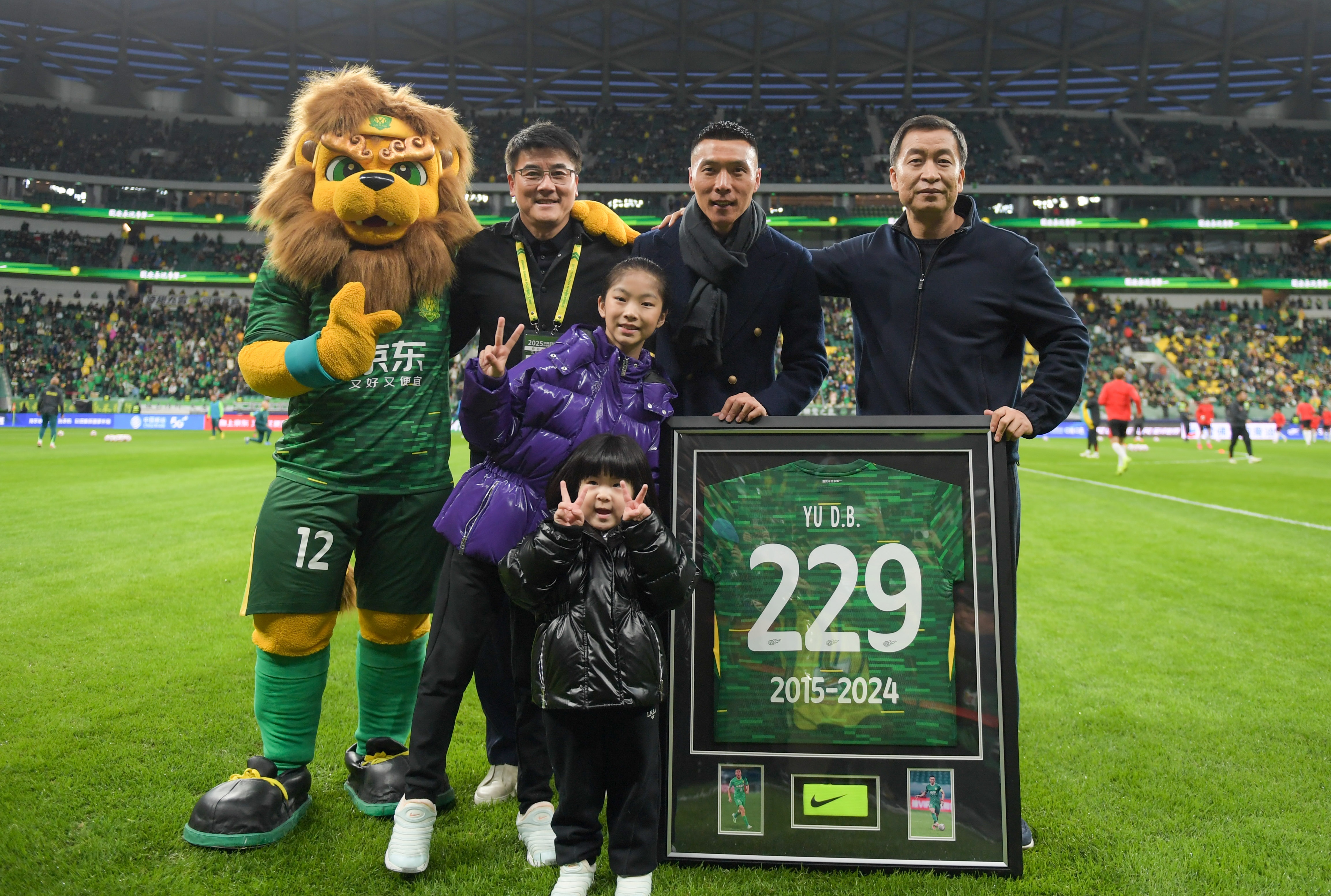 國安今天賽前為于大寶舉辦退役儀式,后者獲贈(zèng)229號(hào)紀(jì)念球衣