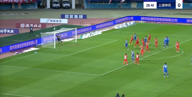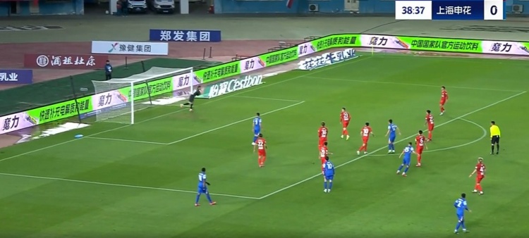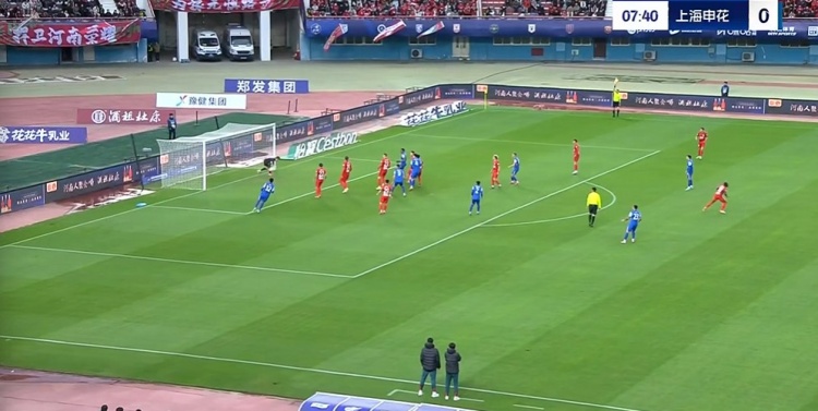 半場(chǎng)-河南1-0申花 邁達(dá)納頭球破門(mén)吳曦門(mén)線(xiàn)解圍高天意定位球中框