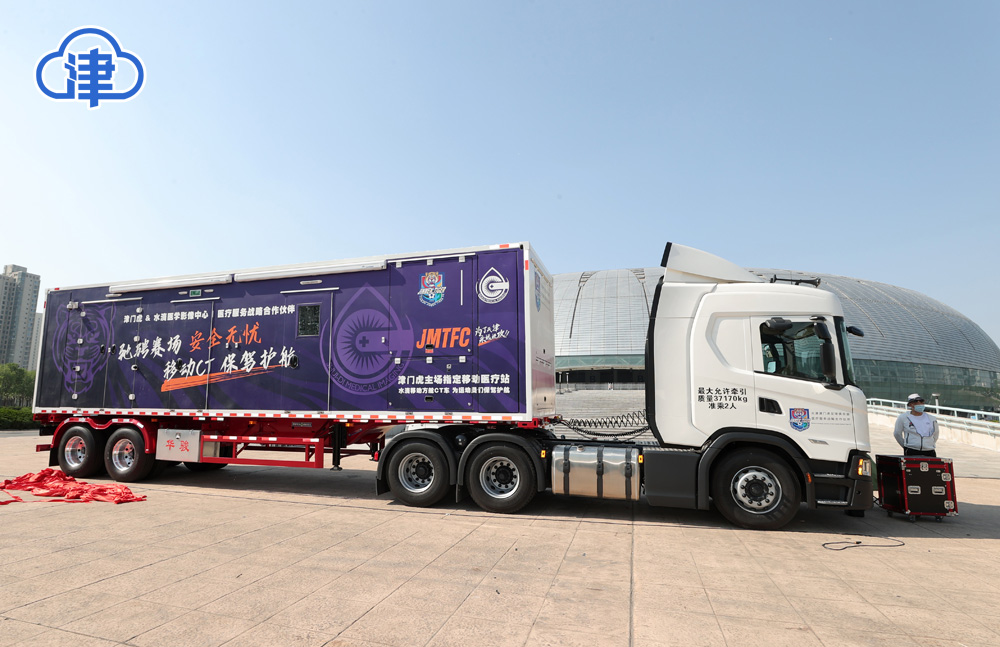 據(jù)悉,這是天津首臺移動方艙CT車。津門虎隊主場進行比賽時,水滴影像中心均會派遣這臺移動方艙CT車隨隊出征。