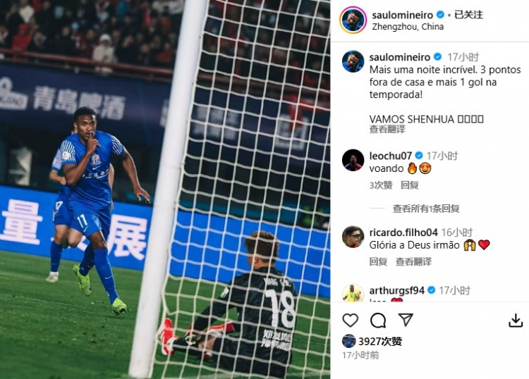 3月30日訊 申花客場(chǎng)3-1逆轉(zhuǎn)擊敗河南隊(duì)后,米內(nèi)羅更新社媒進(jìn)行了慶祝。