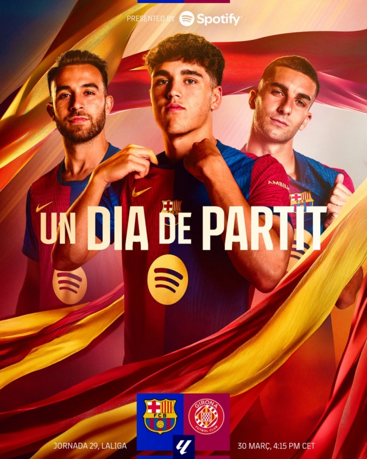 巴薩發(fā)布對(duì)陣赫羅納海報(bào):庫(kù)巴西、費(fèi)蘭、埃里克-加西亞出鏡
