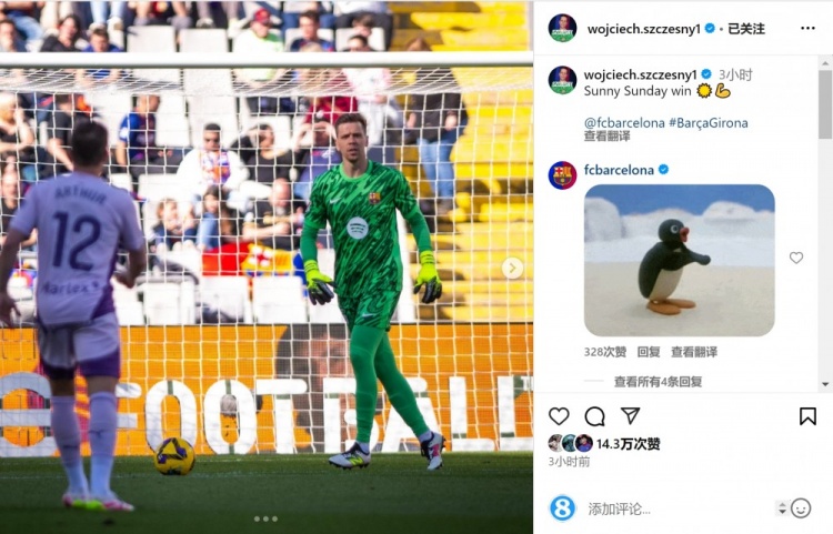 加盟巴薩以來16勝2平!什琴斯尼社媒:在陽光明媚的周日取勝