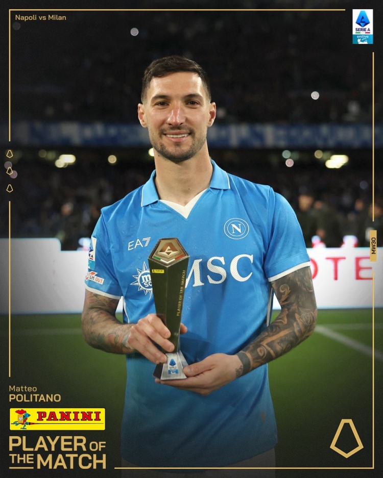 閃擊米蘭!官方:波利塔諾當選那不勒斯2-1米蘭全場最佳球員