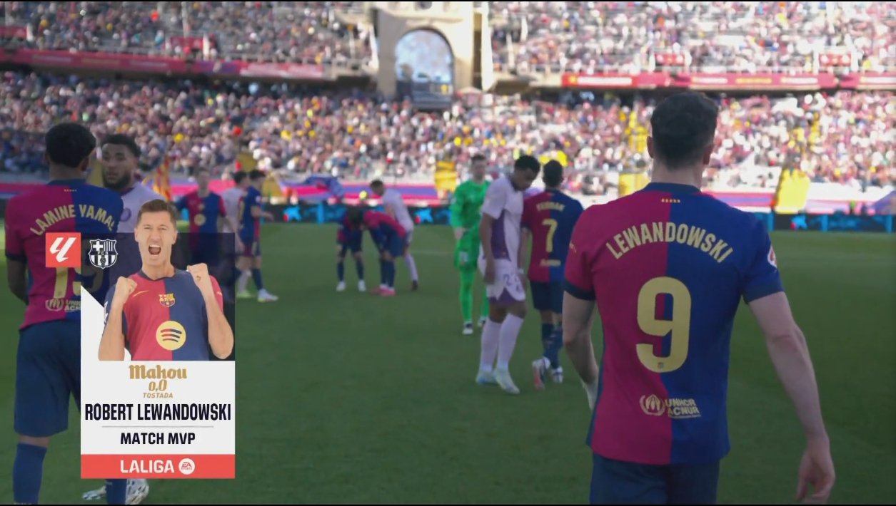 梅開二度!西甲官方:萊萬當(dāng)選巴薩4-1赫羅納全場最佳球員