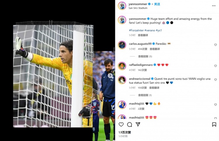 神撲救主!索默社媒曬照慶祝:全隊做出巨大努力,讓我們繼續(xù)前進