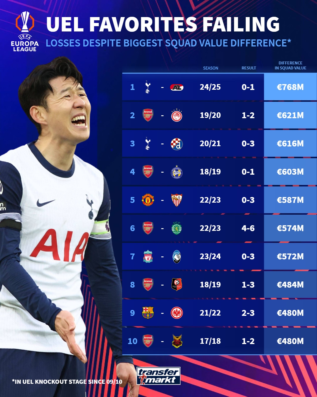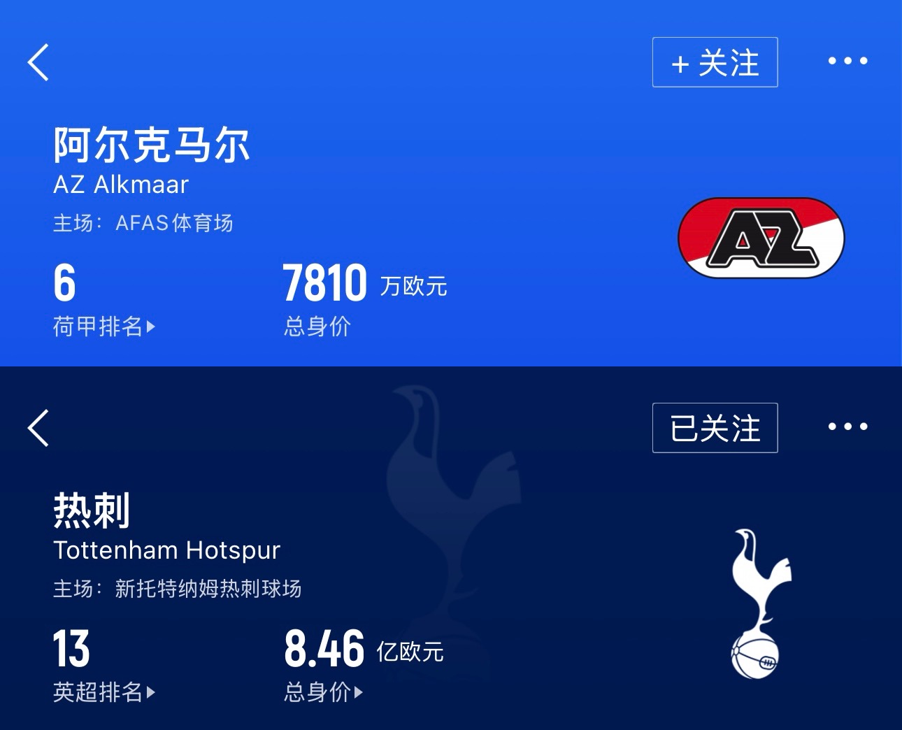 釘上恥辱柱?熱刺與阿爾克馬爾陣容身價差7.68億歐,創(chuàng)造尷尬紀(jì)錄