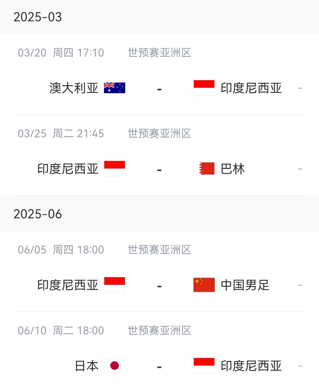 目前印尼在小組中排名積6分第3,本月他們將對陣澳大利亞和巴林。