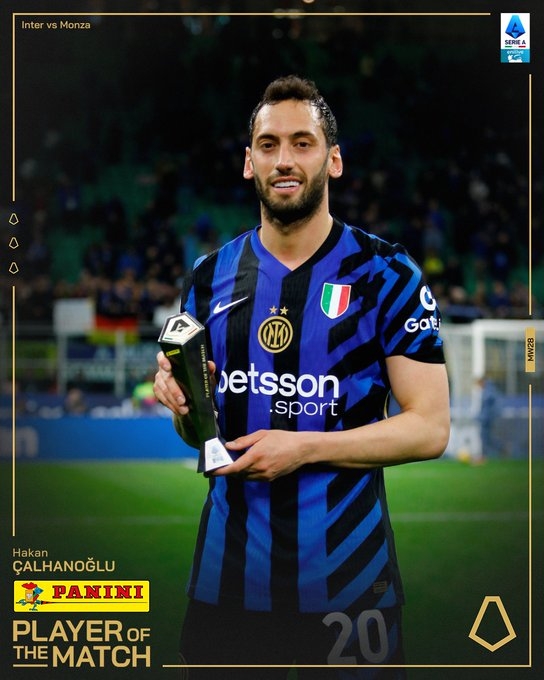 3月9日訊 國米在本輪意甲3-2逆轉蒙扎,恰爾汗奧盧在賽后被意甲官方評為全場最佳球員。
