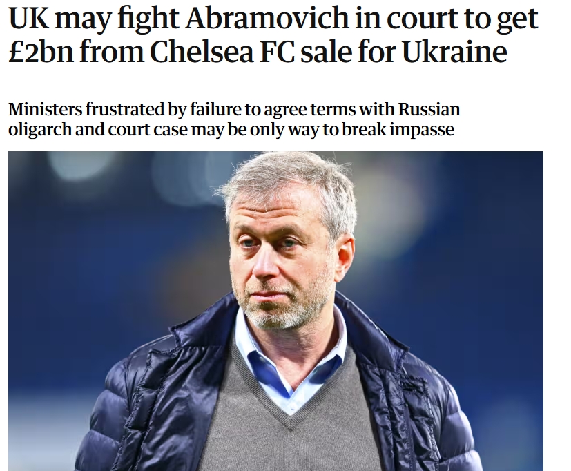 03月09日訊 據(jù)英國媒體《衛(wèi)報》消息,英國內(nèi)閣對遲遲未能與阿布達成協(xié)議感到沮喪,準備將其告上法庭,以將出售切爾西所得的25億英鎊用于援助烏克蘭。